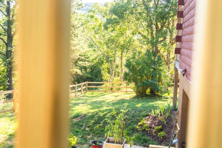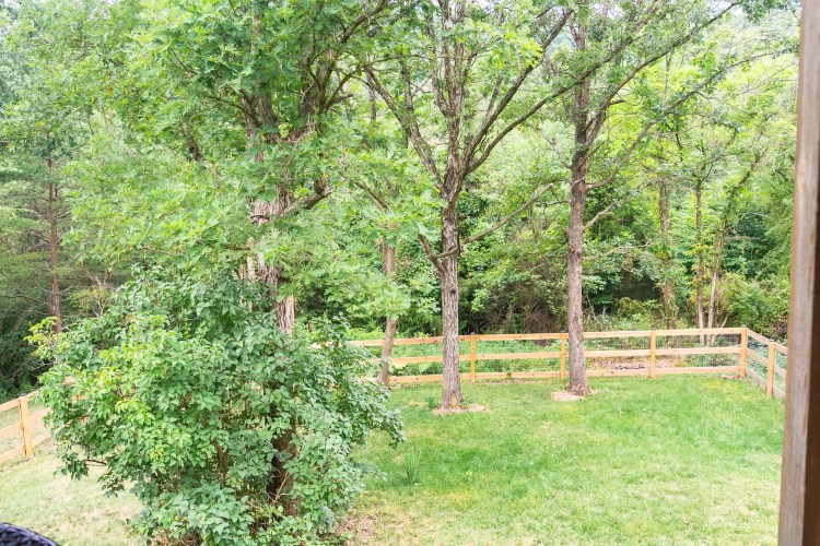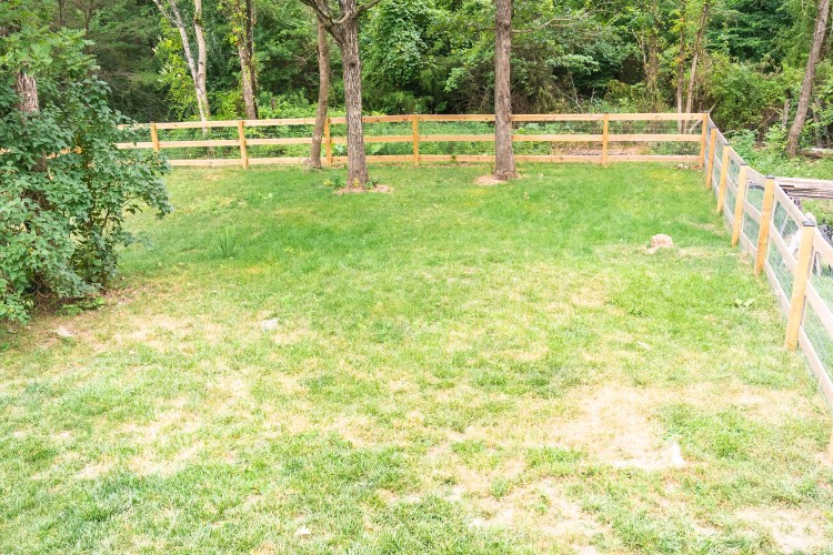 There is a secure, fenced yard with four-foot board and wire fence with lots of shade and enough room for a game of fetch.