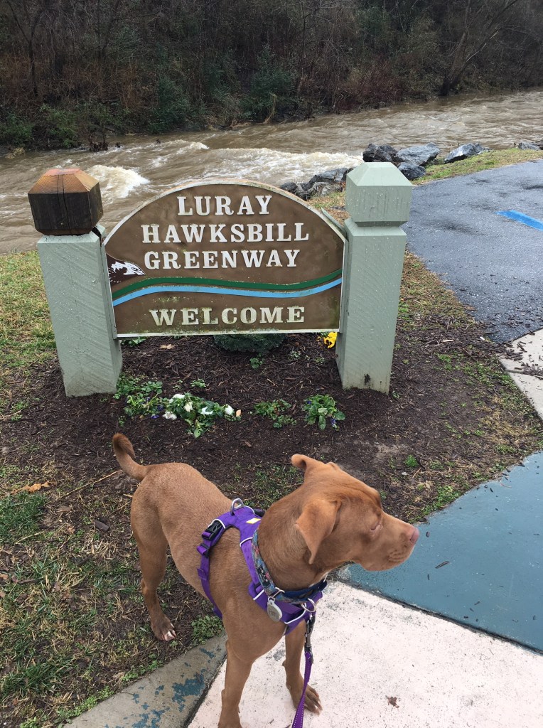 This easy, flat short trail is beautiful, handicap accessible, a great place for kids to ride their bikes, and has lots of murals and other features. We love to take our dogs for a walk along the greenway and jump off it to go into town to the Hawksbill Brewery for a beer (dogs welcome).