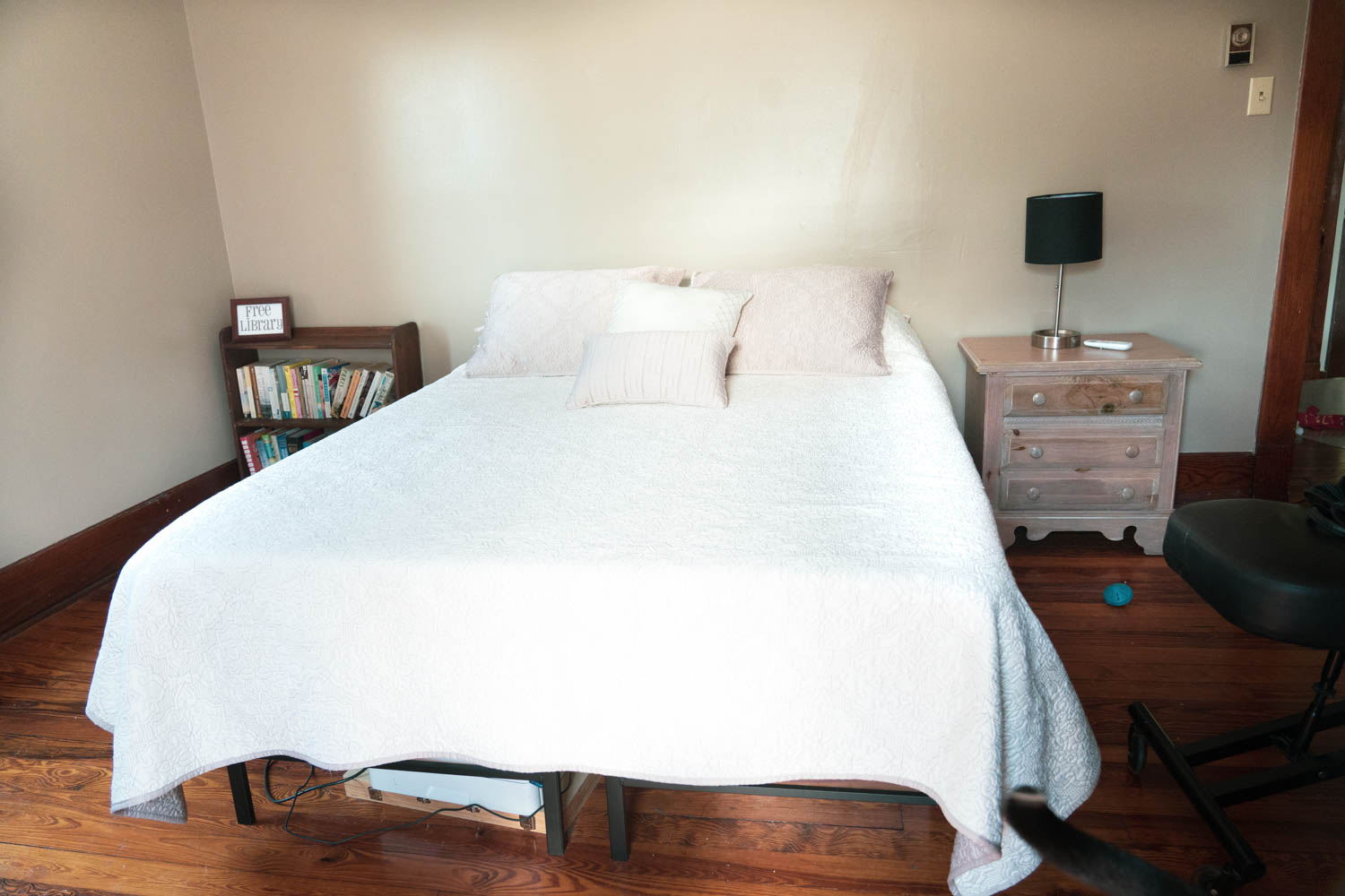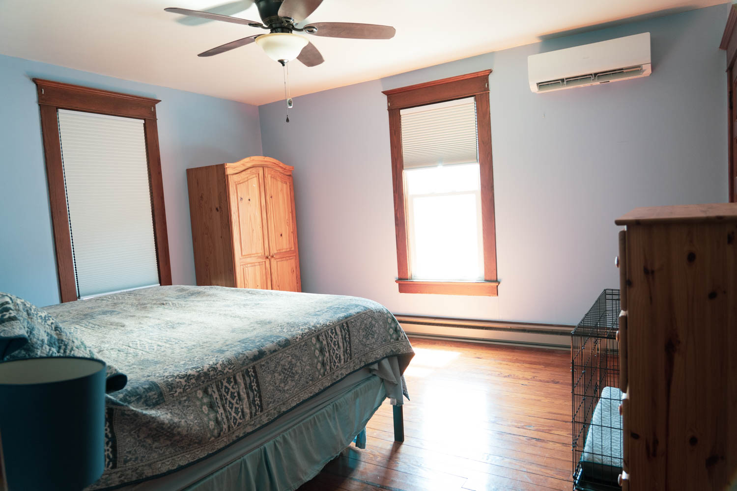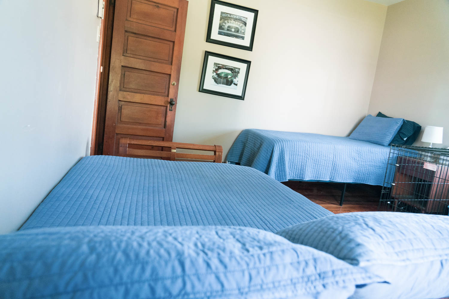 It’s surpisingly quiet for an in-town house, and all bedrooms have room-darkening shades, plus extra box fans if you’d like a little white noise.