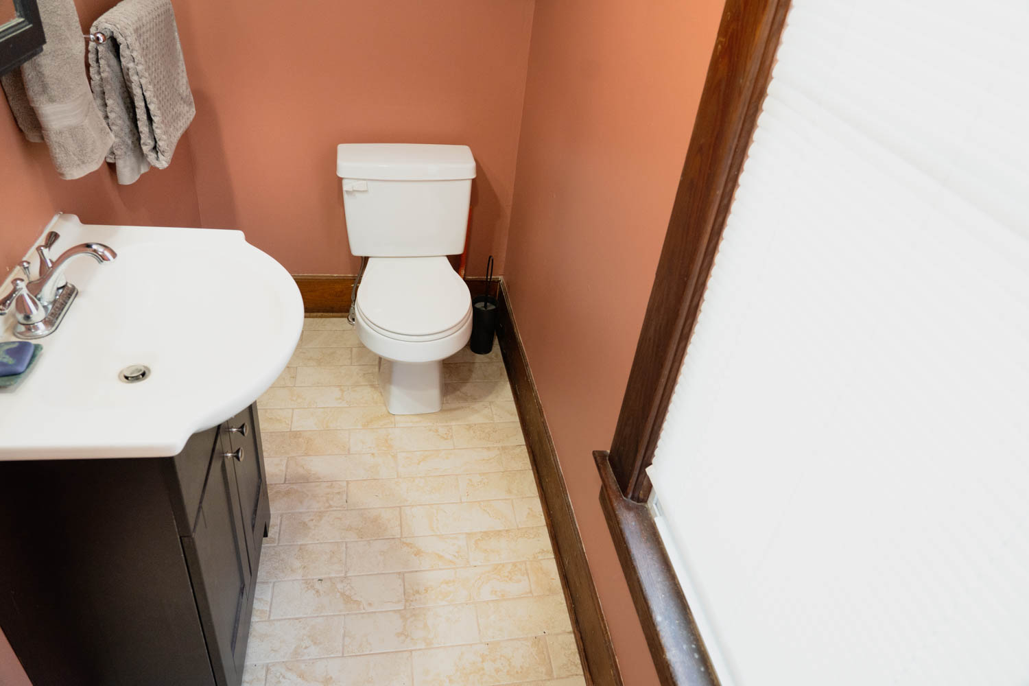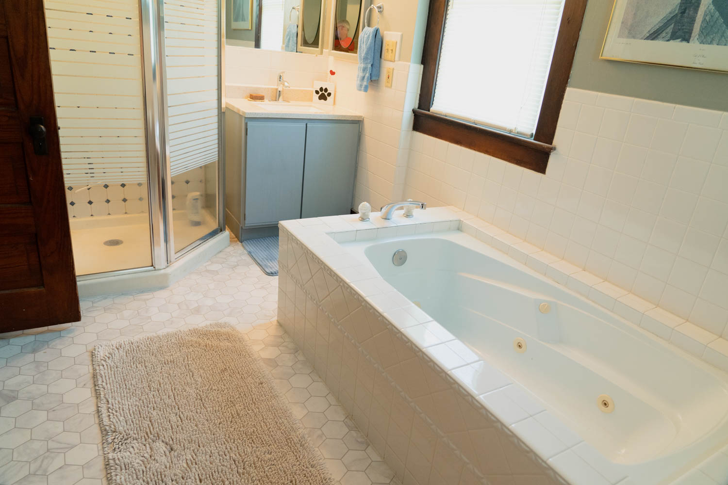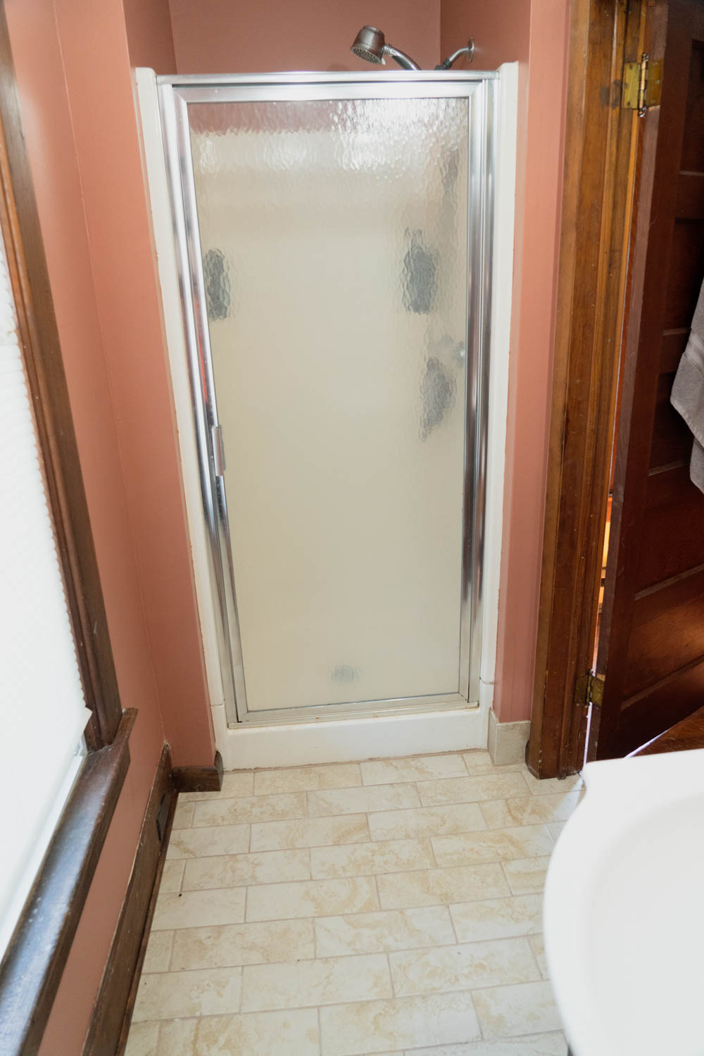 This ‘add-on’ bathroom (the original house had no indoor bathrooms) has a heated tile floor.